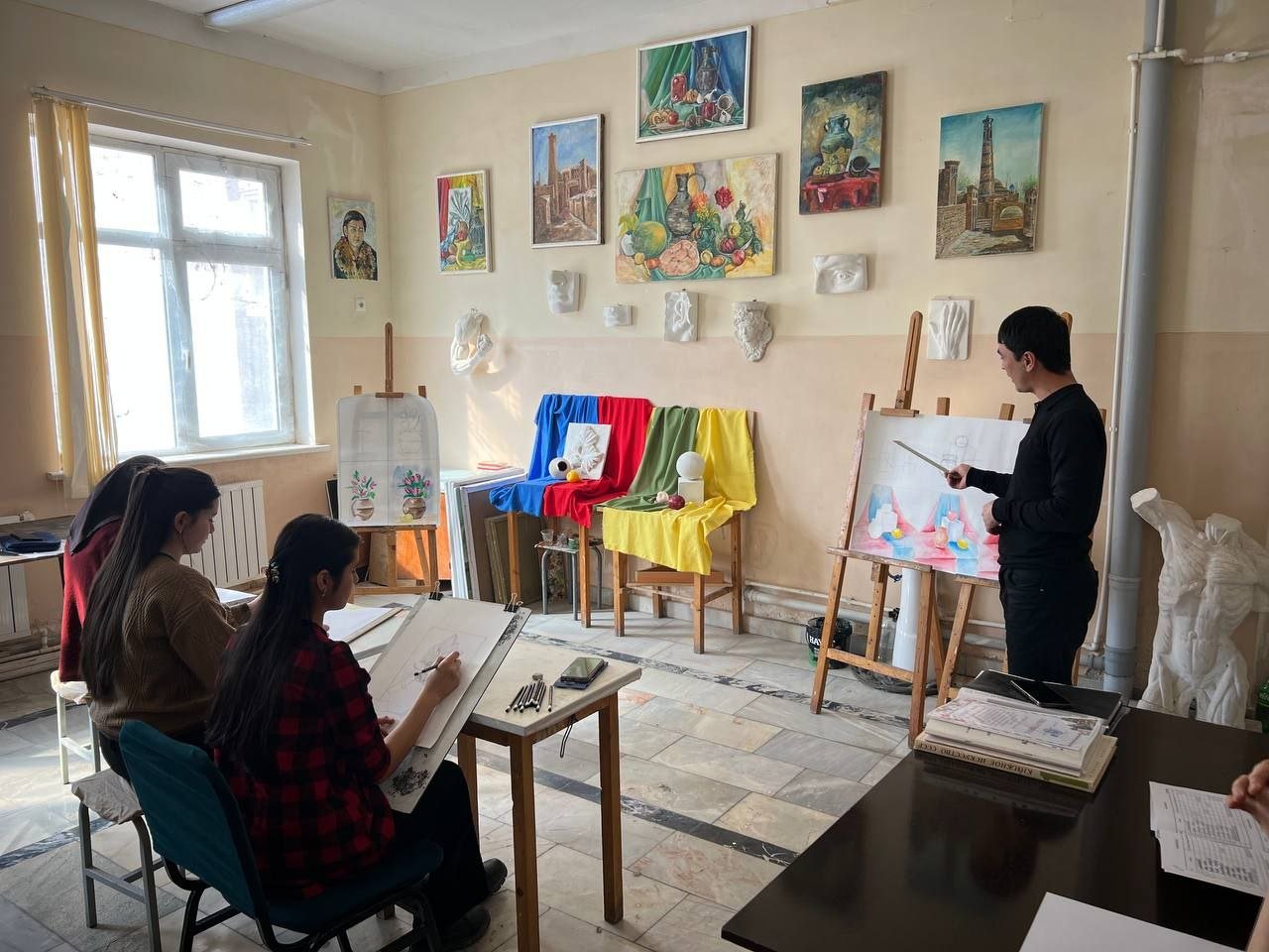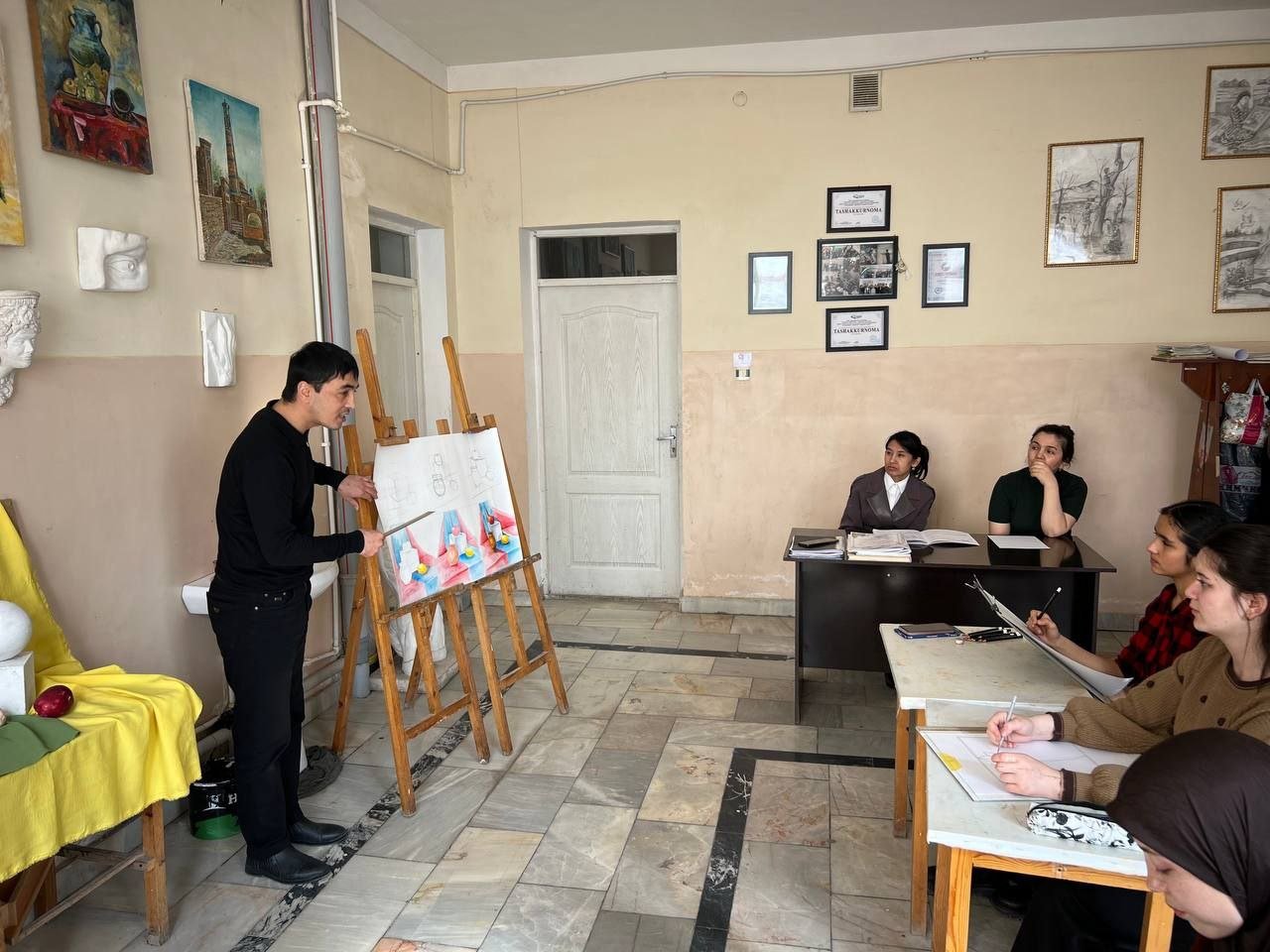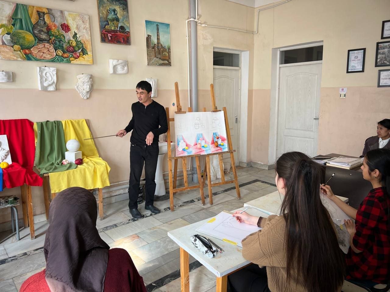 2026 yilning 21-fevral kuni Urganch tumani 11-son bolalar musiqa va san'at maktabi tasviriy sanʼat sinfi o‘qituvchisi R. Vaisjanovning 4-sinf o‘quvchilari bilan Rang tasvir fanidan "Geometrik jismlar va mevalardan tuzilgan natyurmort" mavzusida ochiq darsi bo‘lib o‘tdi.