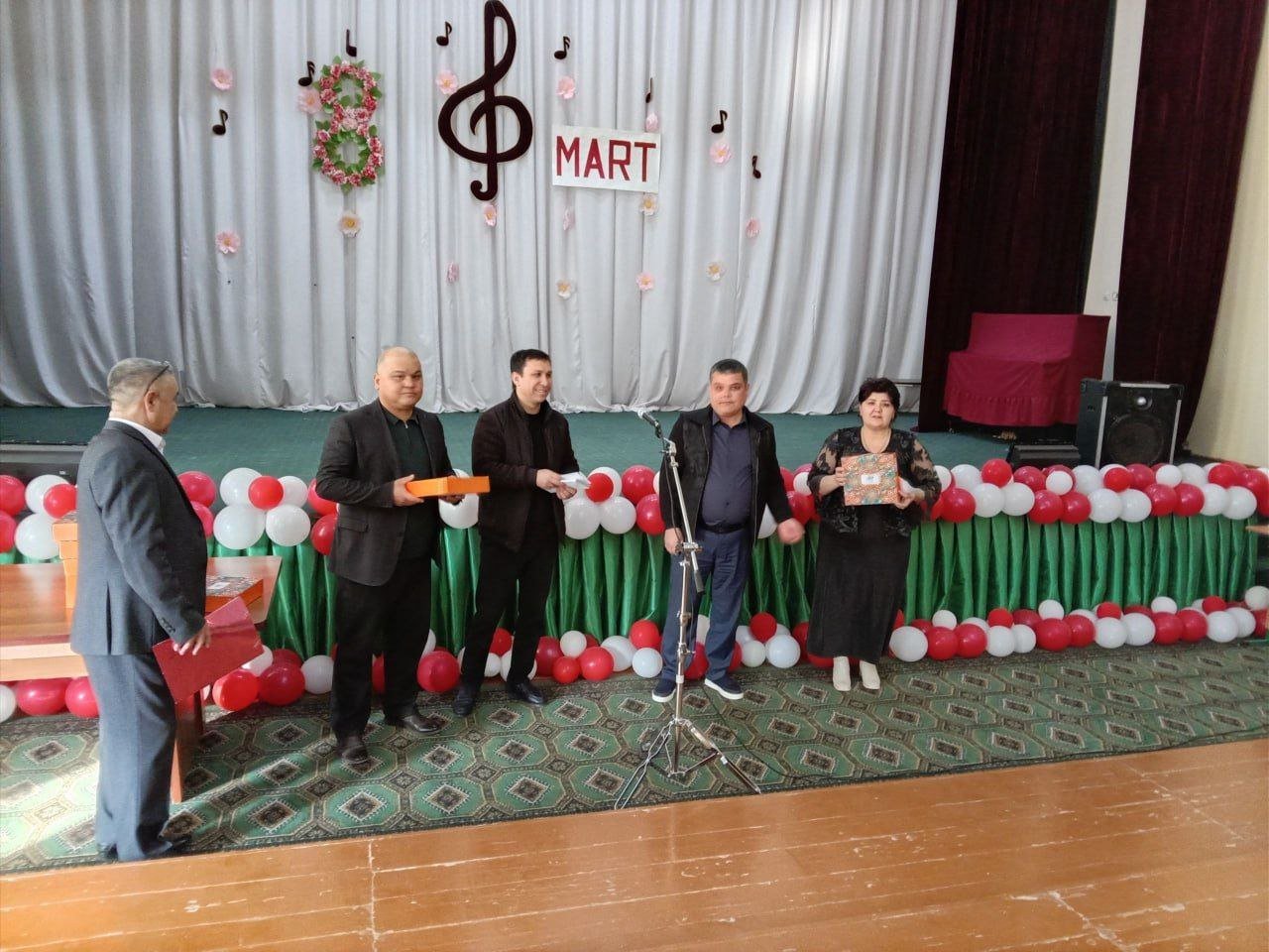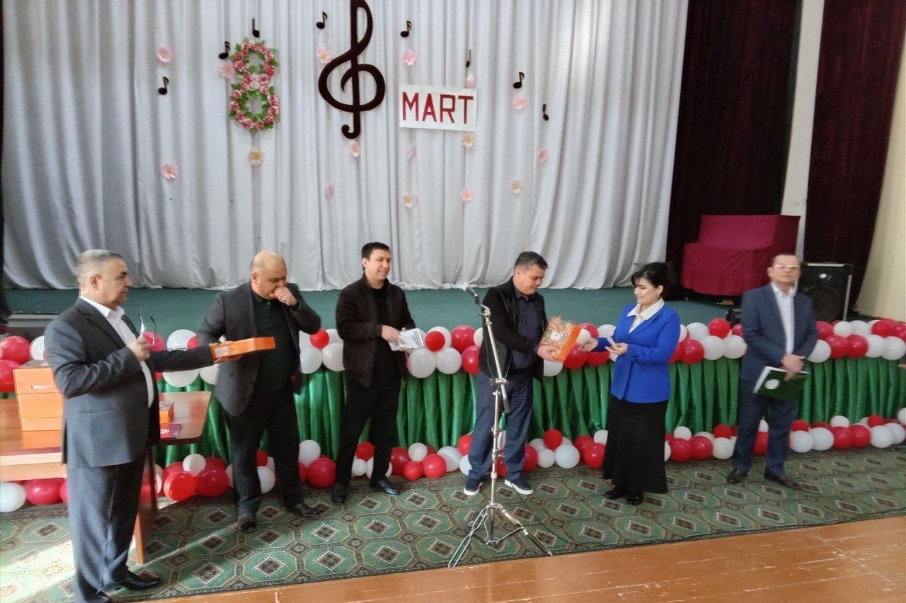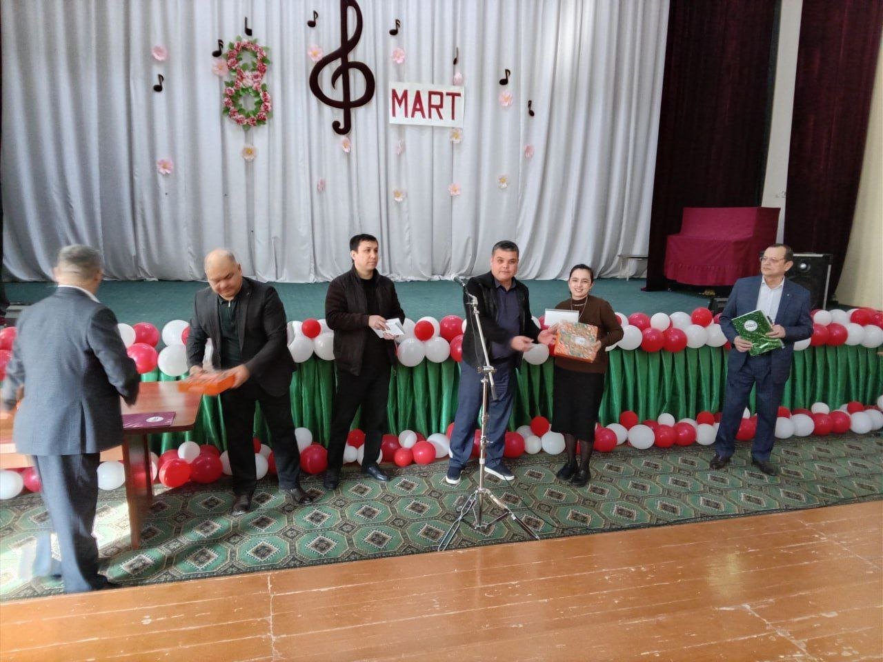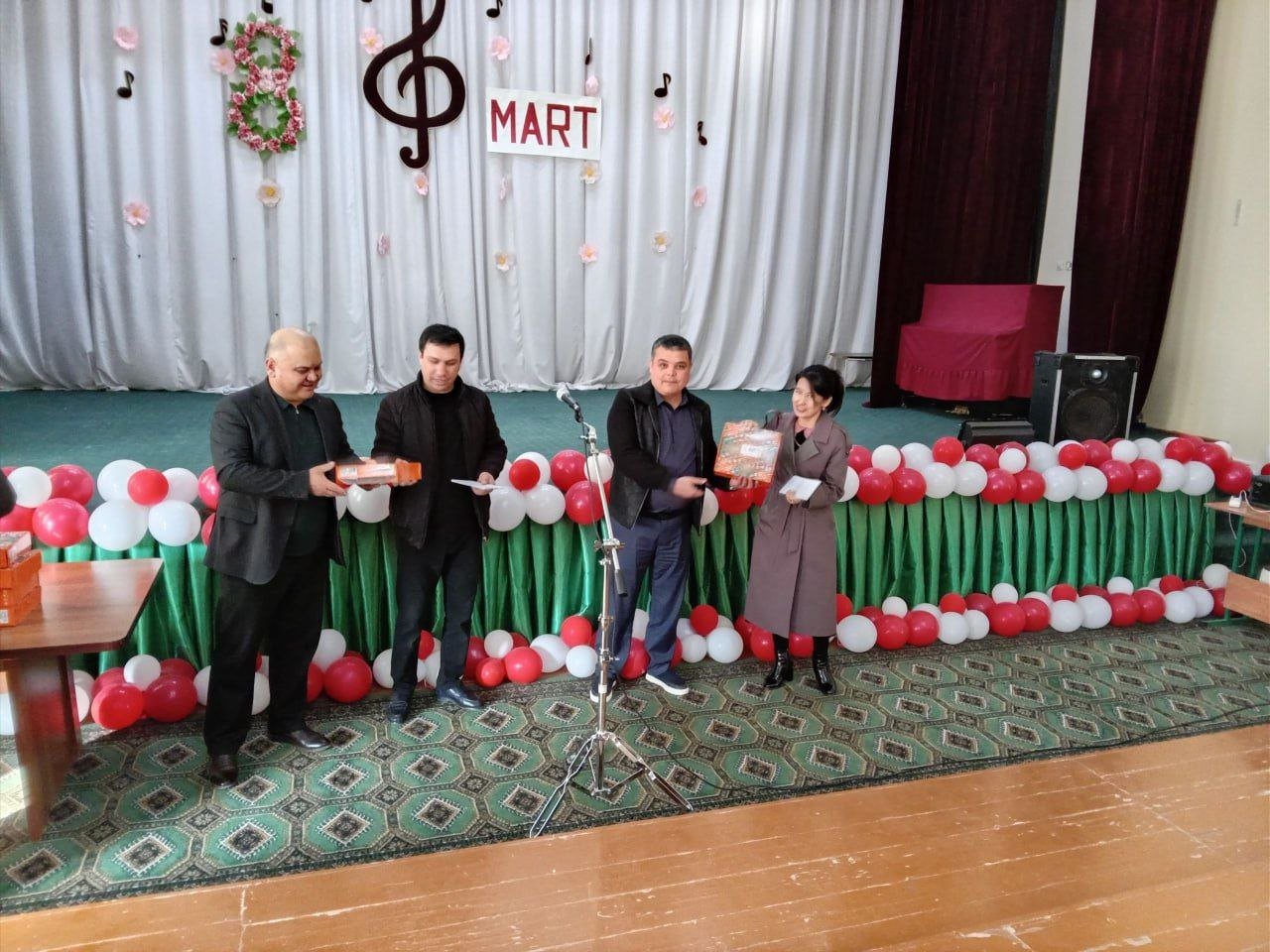 Bayram tadbiri ochilishida maktabimizni erkaklar jamoasi tomonidan tashkil etilgan bayram sovg‘alari maktabdagi barcha maftunkor xotin-qizlarga kirib kelayotgan bayram munosabati bilan chin dildan tabriklandi va topshirildi.