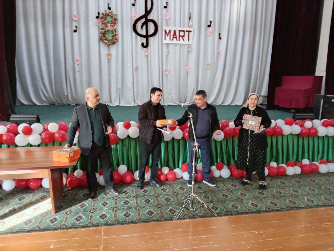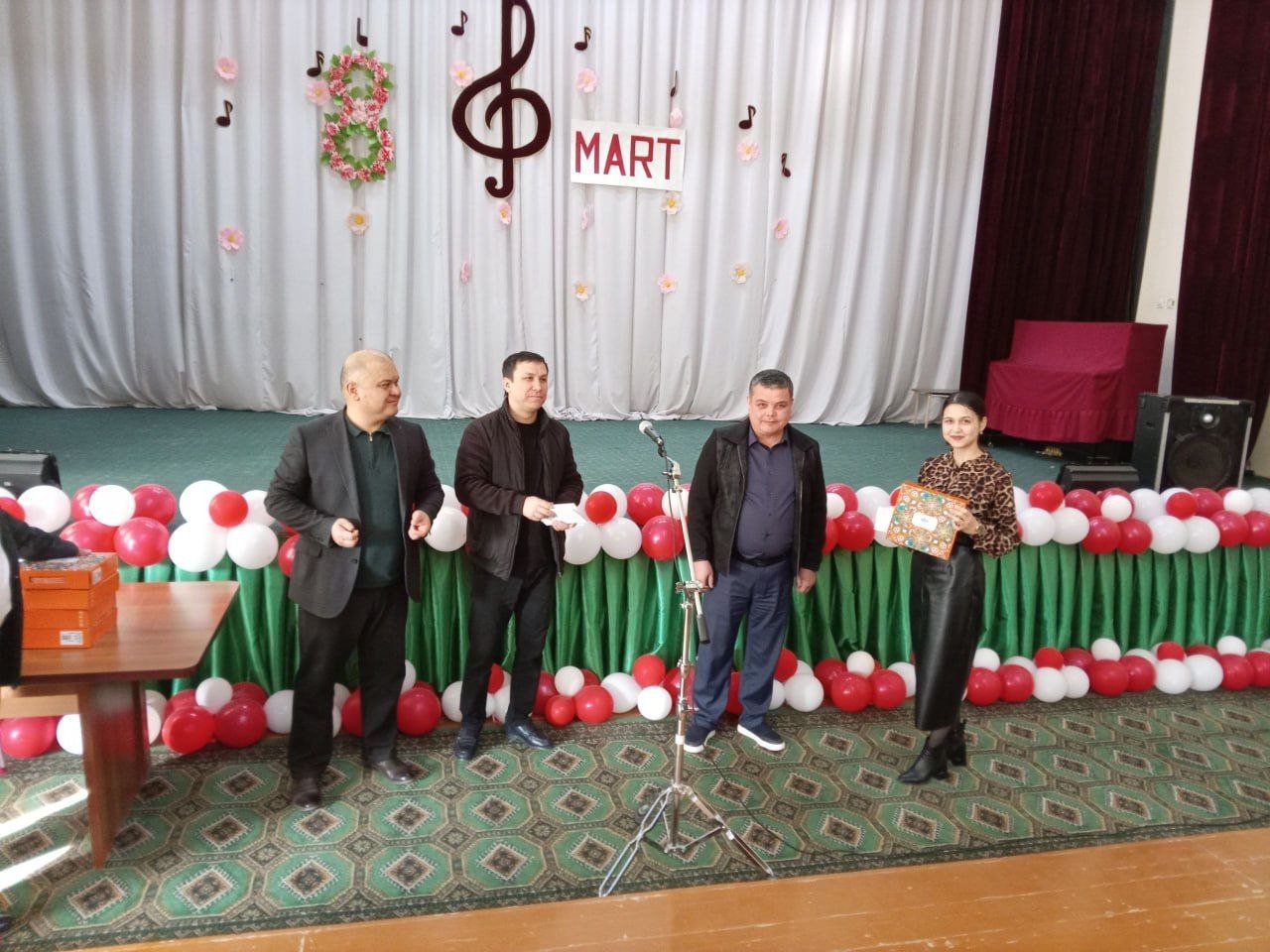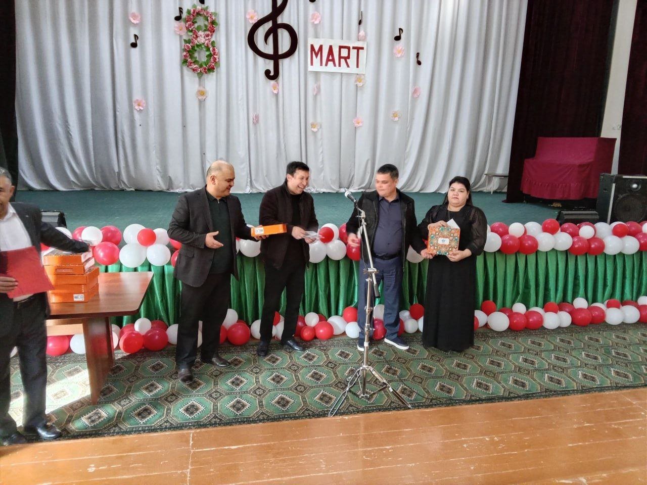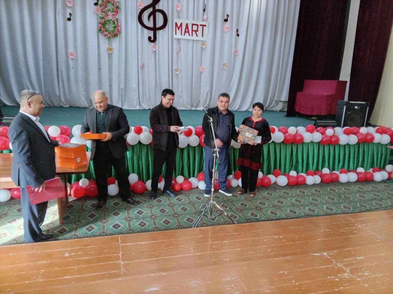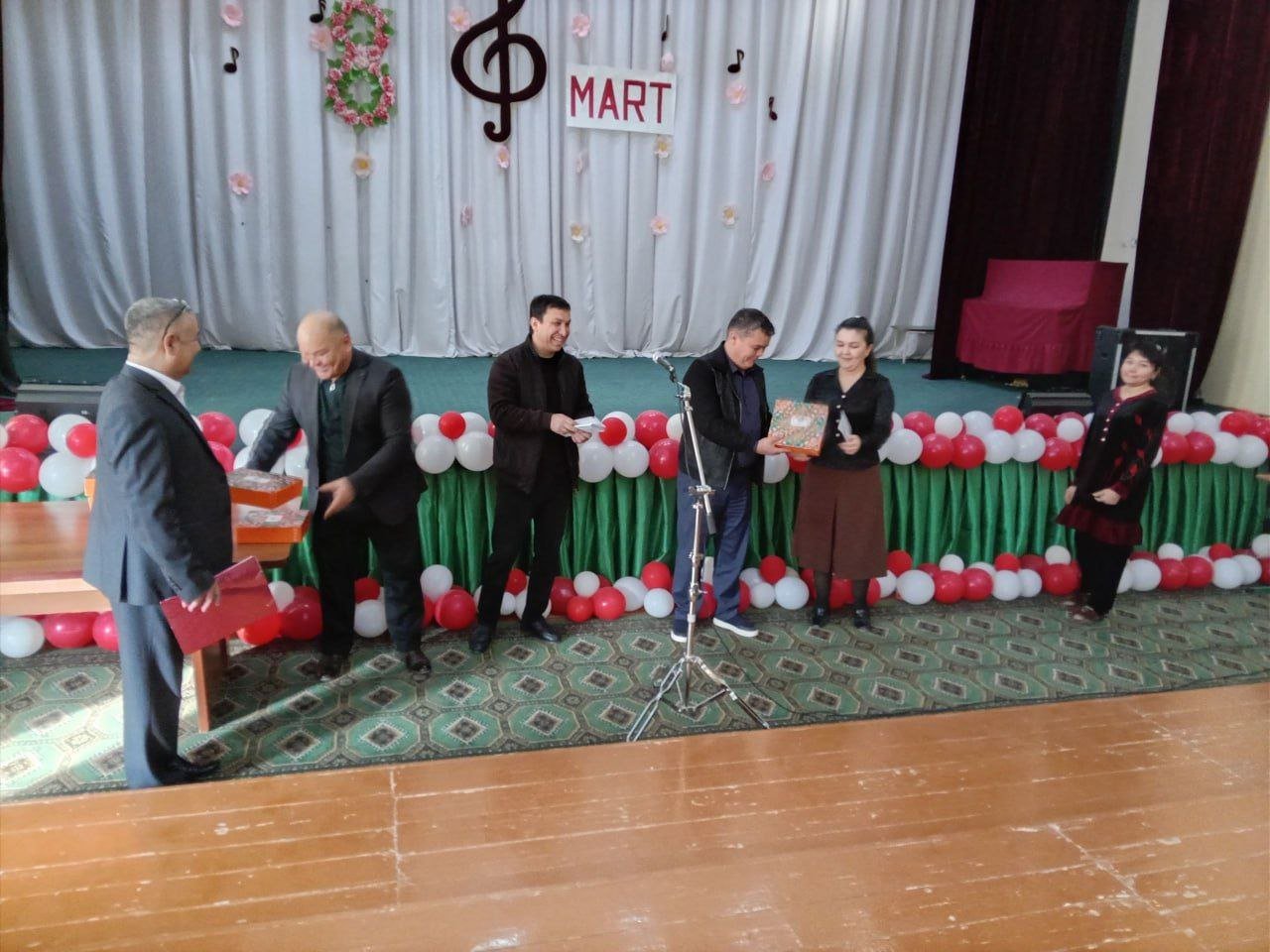 Bayram tadbiri ochilishida maktabimizni erkaklar jamoasi tomonidan tashkil etilgan bayram sovg‘alari maktabdagi barcha maftunkor xotin-qizlarga kirib kelayotgan bayram munosabati bilan chin dildan tabriklandi va topshirildi.