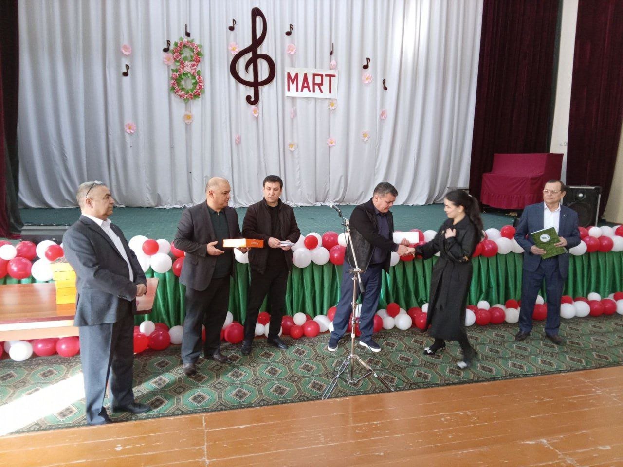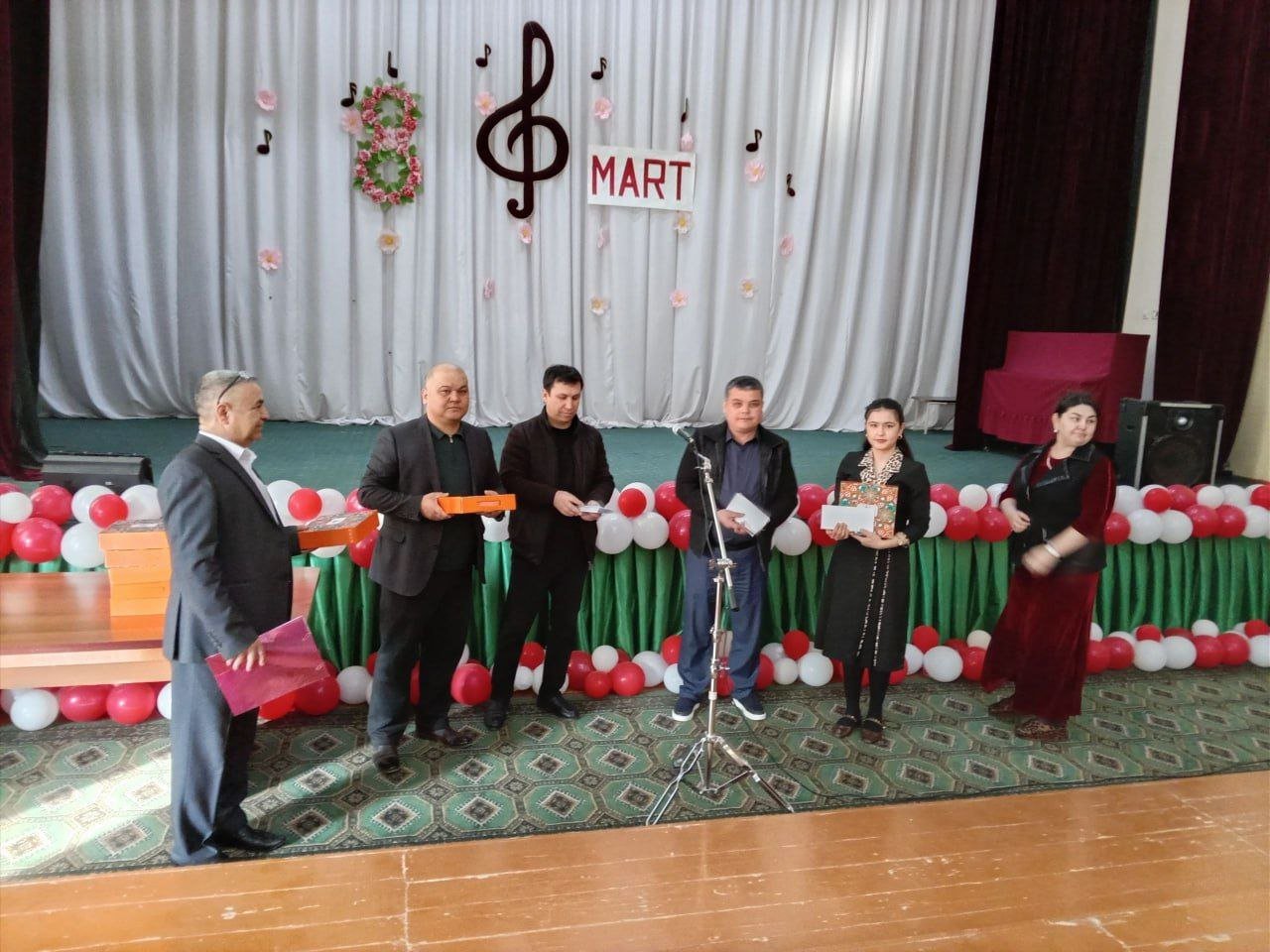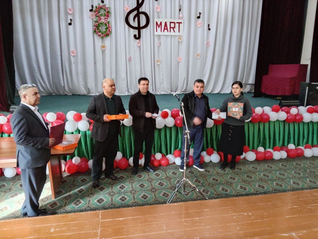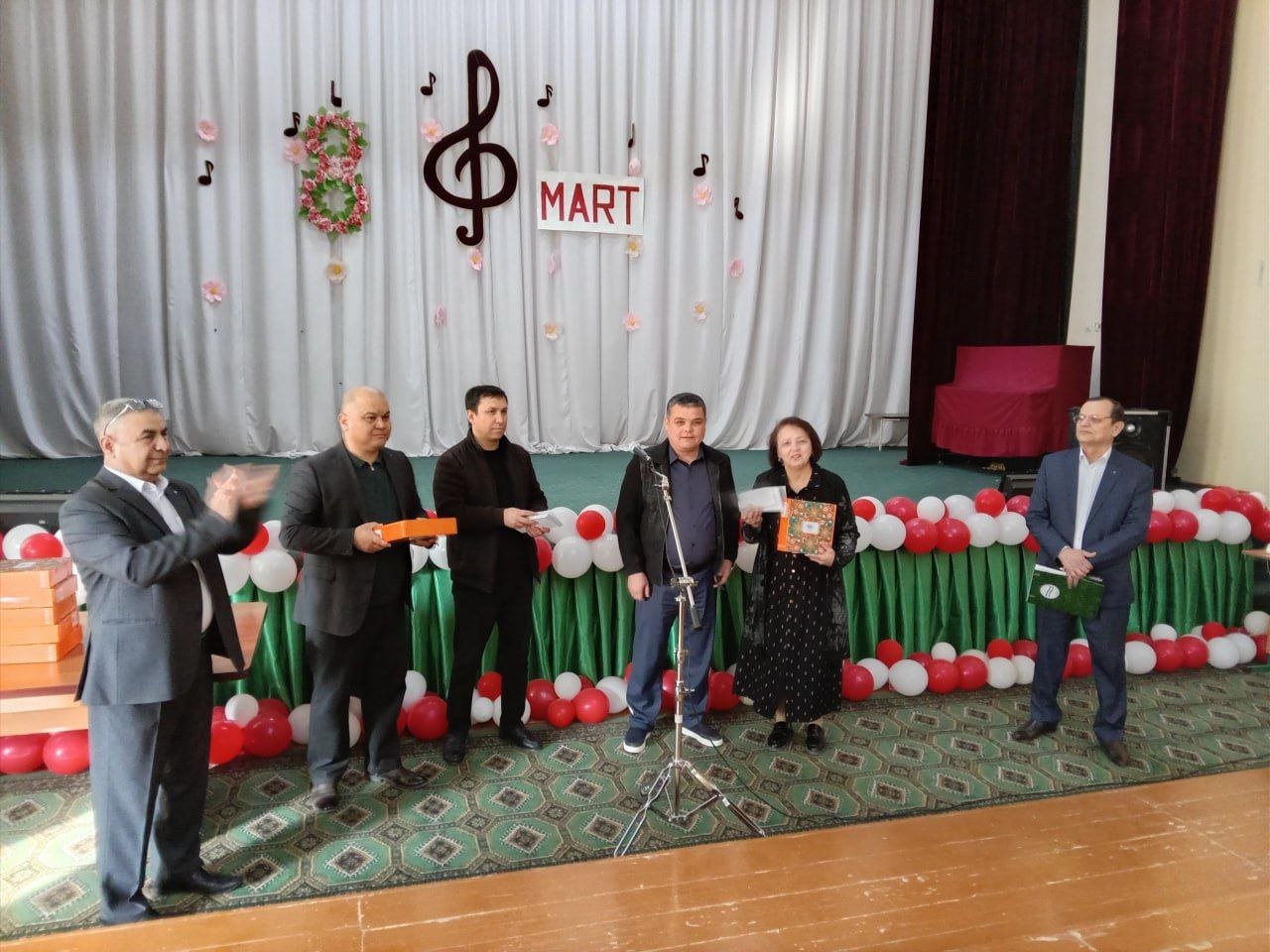 Bayram tadbiri ochilishida maktabimizni erkaklar jamoasi tomonidan tashkil etilgan bayram sovg‘alari maktabdagi barcha maftunkor xotin-qizlarga kirib kelayotgan bayram munosabati bilan chin dildan tabriklandi va topshirildi.