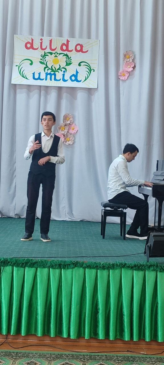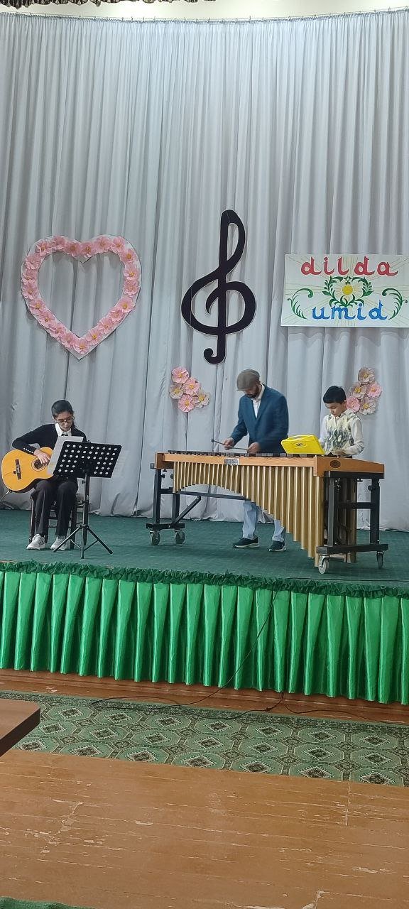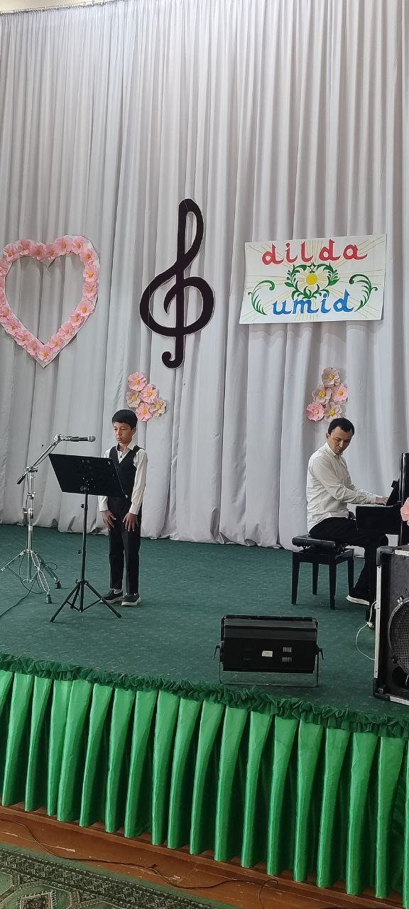 2026 yilning 17-mart kuni Urganch tumani 11-son bolalar musiqa va san'at maktabi fortepiano, torli cholg‘ular, damli va zarbli cholg‘ular, akademik xonanda ijrochiligi bo‘limining 2025-2026 o‘quv yiliga bag‘ishlangan "Dilda umid" deb nomlangan hisobot konsert dasturi bo‘lib o‘tdi.
