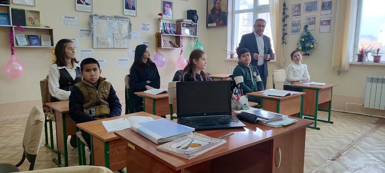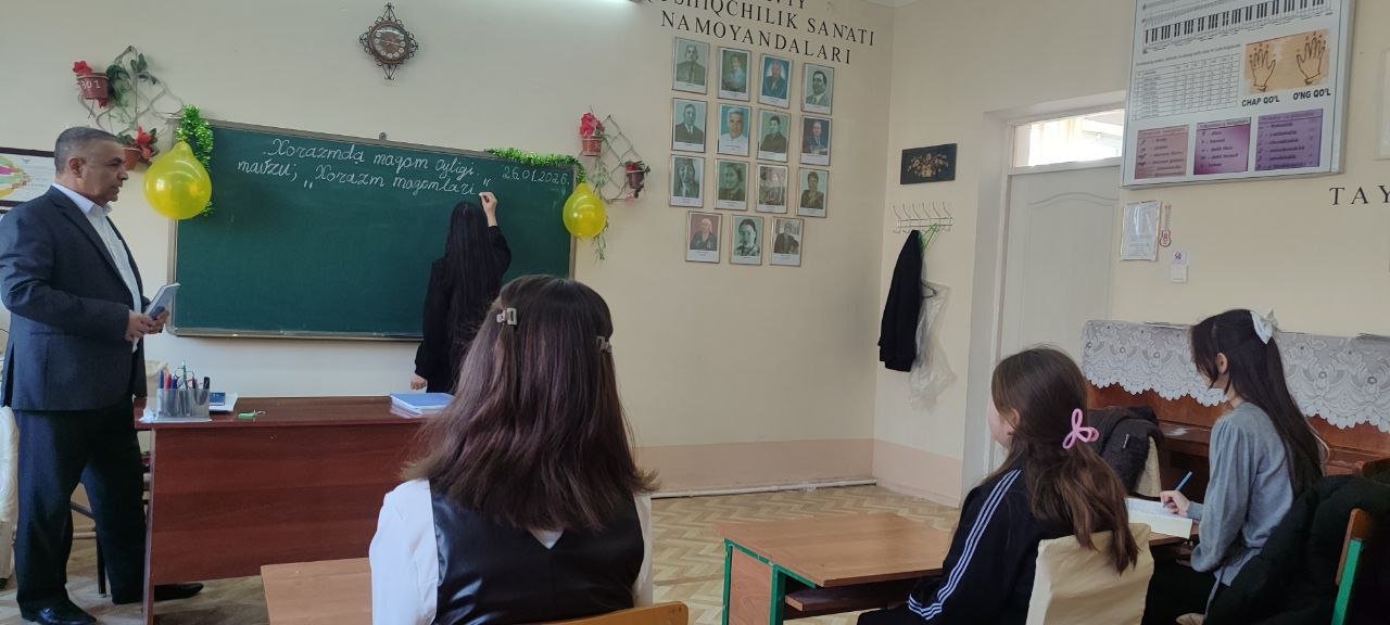 2026 yilning 26-yanvar kuni Urganch tumani 11-son bolalar musiqa va sanʼat maktabi nazariya fani o‘qituvchisi N. Obidovning 1-3 sinf o‘quvchilari bilan maqom alifbosidan "Xorazm maqomlari" mavzusida ochiq darsi bo‘lib o‘tdi.