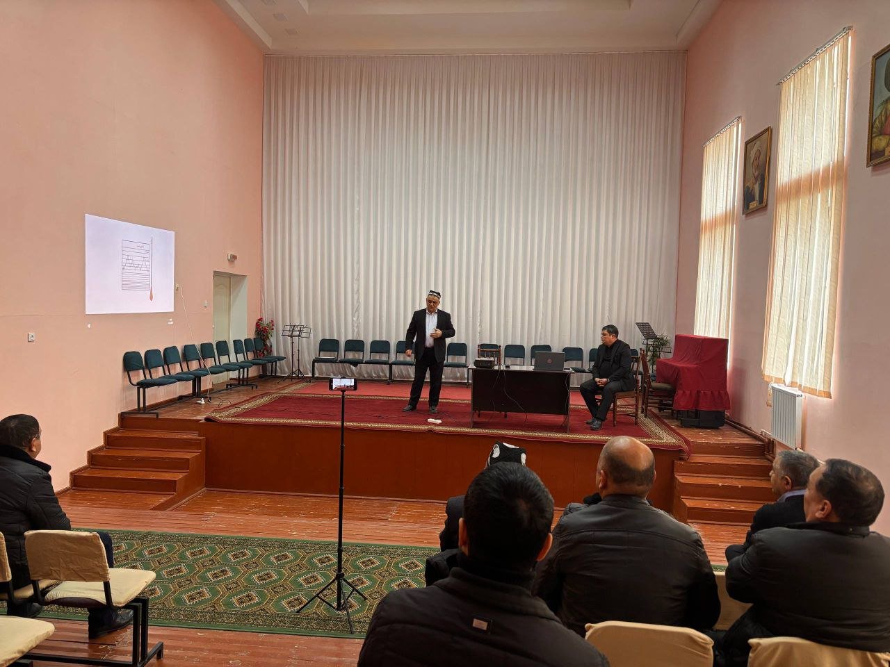 "Xorazm tanbur chizg‘ilari va Urfiy maqomlari" mavzusida mahorat darsi o‘tkazdi. Mahorat darsi o‘qituvchilarimizda katta taʼsurotlar qoldirdi.